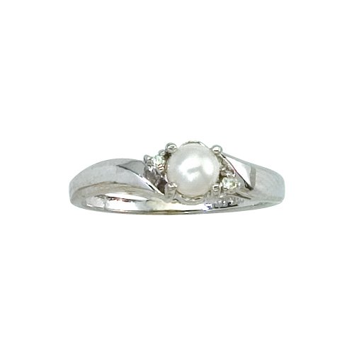 Spectacular 0.02 ct. (Tw.) diamond ring with diamonds on the sides and a pearl in the center. Casted in 10k white gold, this pearl ring adds a lot of style to a special occasion.